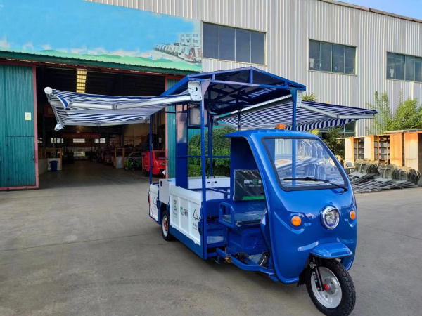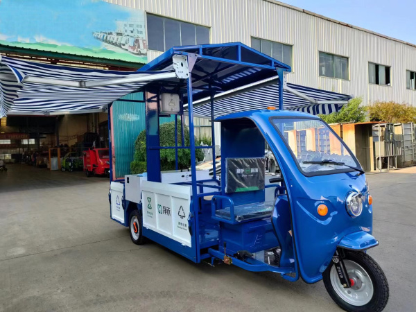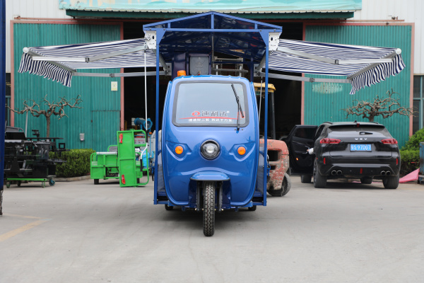 可拆卸式車廂方便運(yùn)輸,車廂可一次裝載6個(gè)國(guó)標(biāo)240L垃圾桶; 加高的防雨蓬,左右兩側(cè)裝有可外延伸1.5米伸縮式遮陽(yáng)棚,蓬內(nèi)設(shè)有LED日光燈輔助照明; 工具箱處設(shè)有洗手盆,車載塑料清水水箱,以及車載不銹鋼污水水箱,即滿足用戶清水洗手,又不造成污水拋灑; 整車后垃圾框、頂棚、支撐桿全部采用螺栓連接,方便發(fā)貨運(yùn)輸; 整車可增配車載垃圾稱重系統(tǒng)、車載清洗系統(tǒng); |